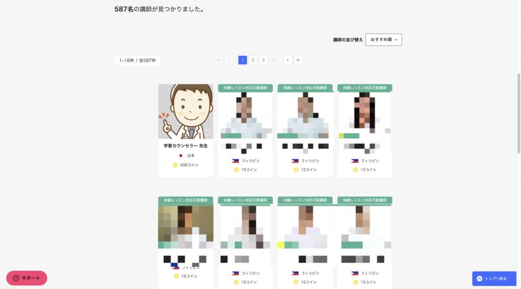 Camblyに比べて、産経オンライン英会話に関してはYouTubeやTwitterで発信する人があまり多くない(見つからない)ので、受講してる人の人数は多くないのかも。